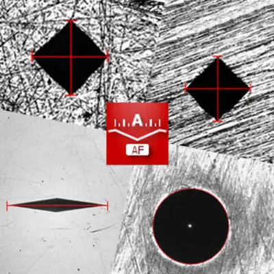 Vickers, Knoop, and Brinell measurements. The AI software will automatically measure indents on any surface from perfectly polished to rough & etched samples.